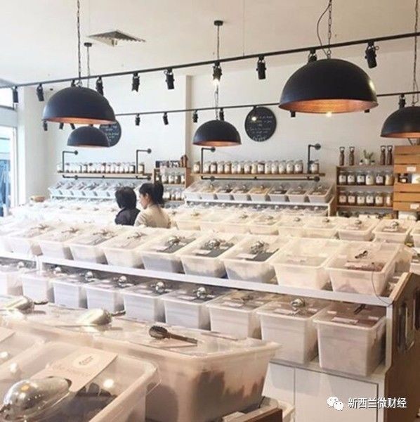新西兰首家店内,陈列了400多种杂粮零食类商品,他们的存货类型,以最接近食物原始的样子为原则。