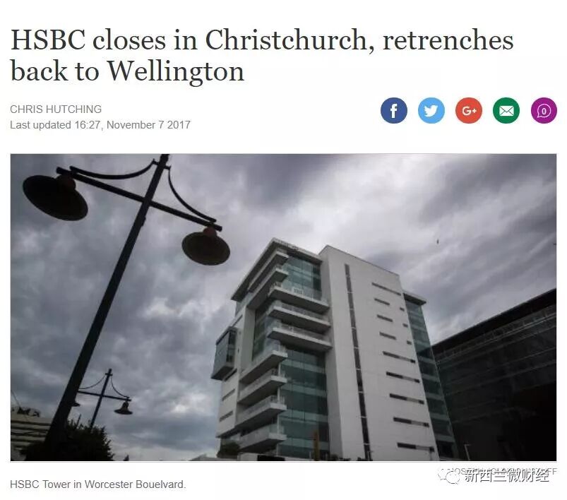 另外HSBC一位发言人对外称,这是总行的战略调整,HSBC将从11月底开始关闭基督城办公室。