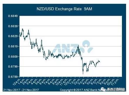 周二早间新西兰元兑美元下滑至0.6792,距离周五所及一年半低点0.6781不远。