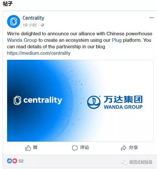 【天维网 新西兰微财经 综合】 3月12日,总部位于新西兰的区块链公司Centrality NZ对外宣布,万达网络科技集团与Centrality NZ公司开展了战略技术合作。