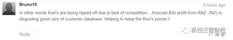 “换句话说新西兰因为竞争更差所以支付更多……想到ANZ 20亿利润对比如此小的客户基数,就感到disgusting,果然是在‘帮助’让新西兰变得更穷。”
