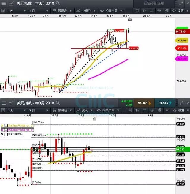 93.94—93.73水平为重要的支撑水平,短期卖压留意94.8—95.24水平区间。