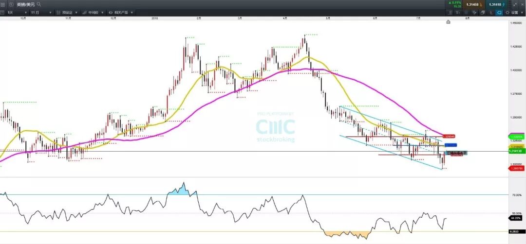 英镑上周五借助美元的下跌迎来一波强劲反弹,汇价重新返回1.31水平上,日线卖压留意1.1384—1.32水平区域。