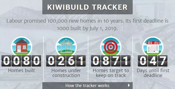 目前距离第一年结束还剩47天,Kiwibuild仅有80套房产完工,即使算上在建的261套房产。