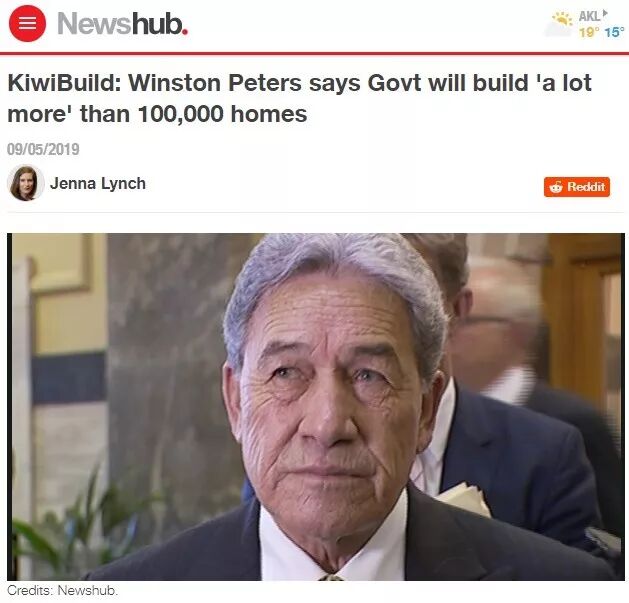 优先党党魁,新西兰副总理Winston Peters表示政府将建造远超10万套住房。