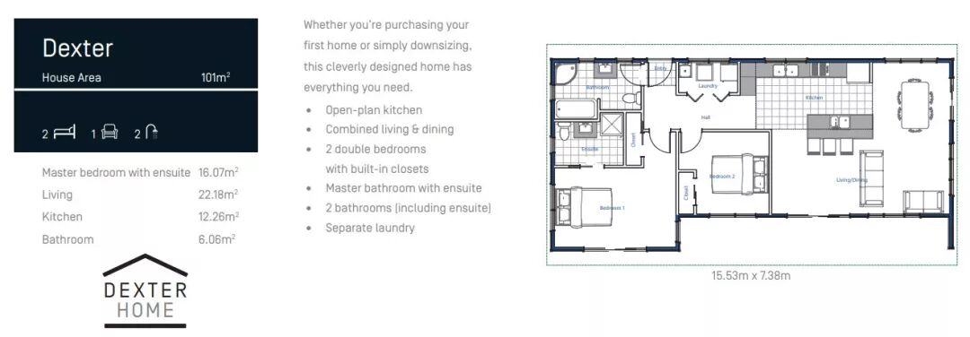 Kāpiti Coast建筑商Simon Hinds称,这种房子的价格与面积大小相关,59.6平米两居室oxford房型一套售价79,350纽币,106平米的四居室售价130,572纽币。