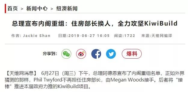 比如说,本次内阁重组除了让Megan Woods成为住房部长,还让新进入内阁的Kris Faafoi负责公屋事宜。