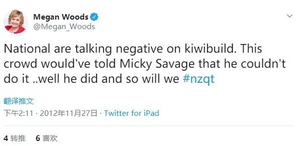 2012年,时任工党住房事物发言人的Annette King提出了这一政策。当然,遭到了当时执政党的国家党的嘲讽,Megan Woods在七年前曾经为Kiwibuild正名。