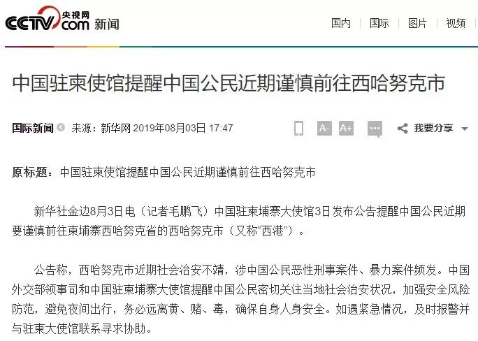 而在柬埔寨的西哈努克,涉中国公民的主要是恶性刑事案件,暴力案件频发。