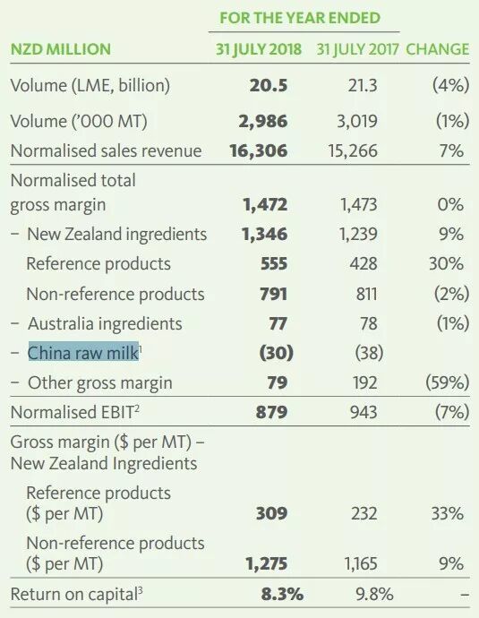 摘抄自2018年恒天然财报