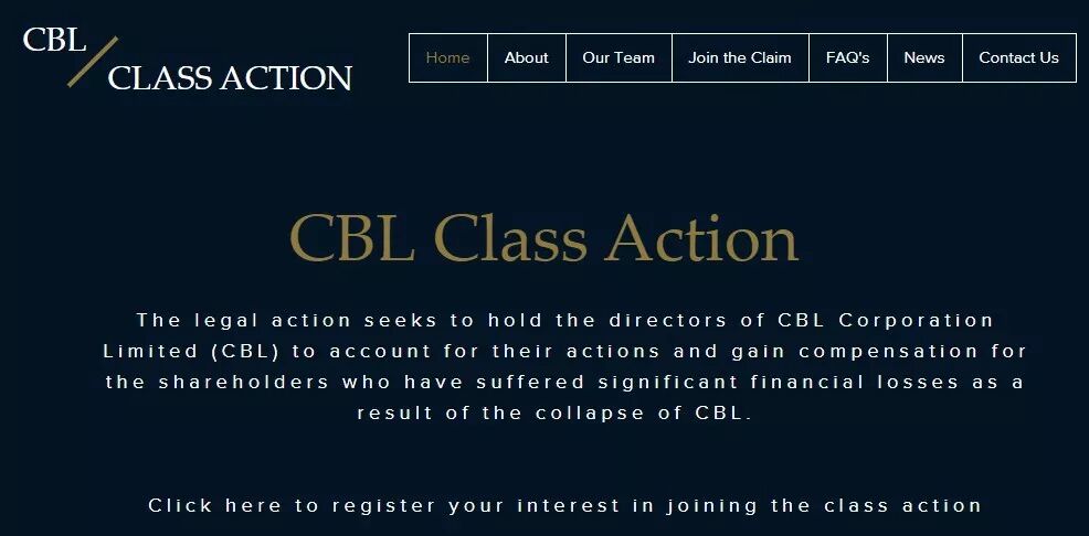 这方面的集体诉讼是旨在使破产公司的董事承担责任,并为因CBL倒闭而蒙受重大财务损失的股东获得赔偿。