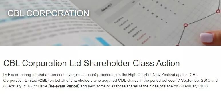 因为在CBL的IPO的2015年9月到2018年2月CBL在股市停牌,CBL违反了金融市场行为法 2013(NZ)(Financial Markets Conduct Act 2013)的披露责任要求。该索赔将指控CBL违反该法案并造成CBL股东损失和损害。