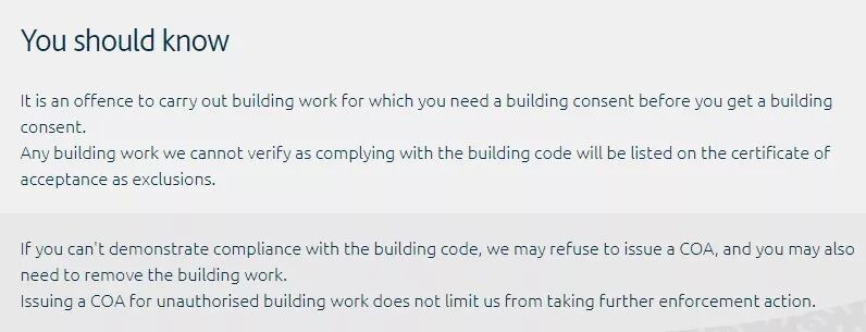 在新西兰,92年之后所有新建和改建的房屋和永久性建筑都需要拿到市议会的CCC(Code Compliance Certificate)才算是合格的建筑。