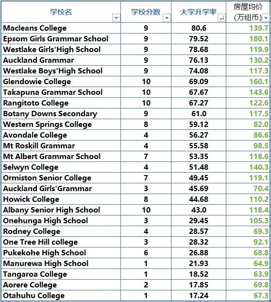 相比之下,均价只有139.7万纽币的Macleans College性价比更甚一筹,不仅升学率突破了80%大关,房价也并没有突破天际。