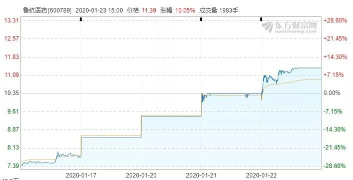 比如说抗生素龙头企业鲁抗医药,连续四天涨停。多只医药股均出现了涨停。
