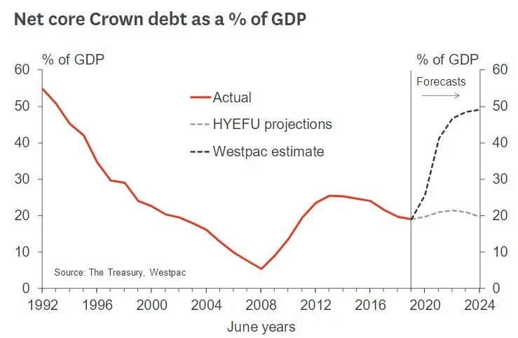 在这里Westpac银行的经济学家预测2020年新西兰GDP将萎缩6.3%,2021年只会回升4.3%。如此羸弱的经济前景亟需大规模的货币与财政政策支持。