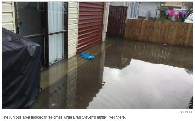 在Steven和他的另一半还有两个年幼的孩子搬进这套房子之后的一周,车库的两个房间就淹水了,他们的电脑,iPads,衣服以及书本无一幸免地全被泡坏了。