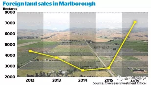 附图:Marlborough地区外国人购买土地变化线“