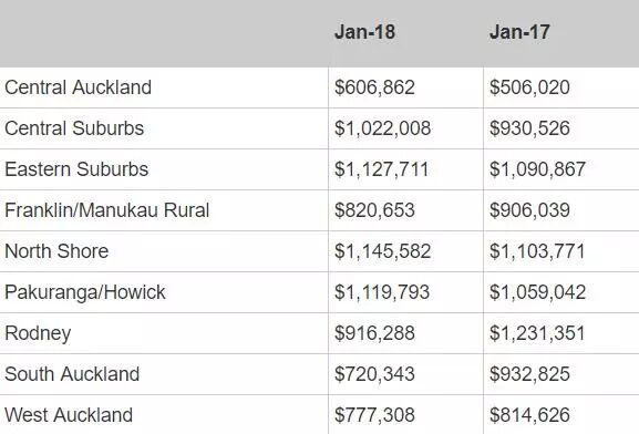 1月份奥克兰中间交易价格$830,000,对比12月时为$870,000,2017年1月时为$846,500。
