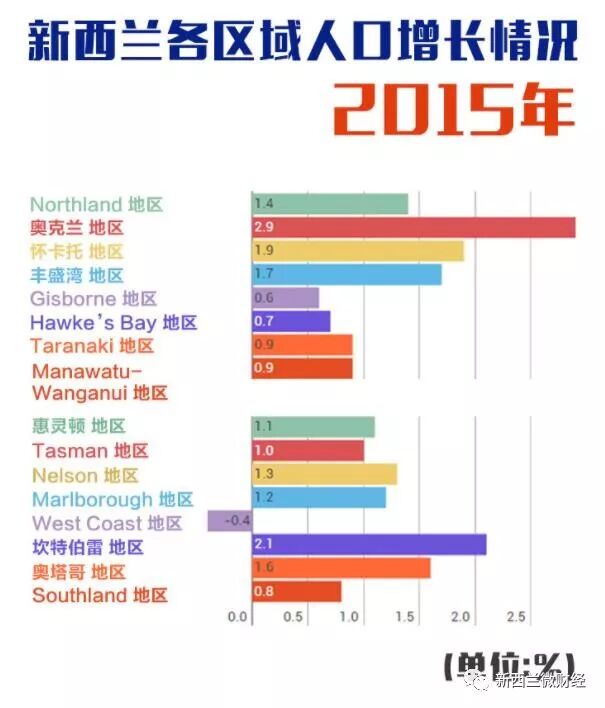 上面的投资专家提醒投资人注意当地人口变化,那么新西兰哪些地区人口增长快,哪些慢呢?根据2015年人口统计情况,详见下表: