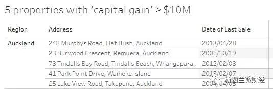 结果发现,有5套房子的‘资本利得’有条件超过1000万纽币。