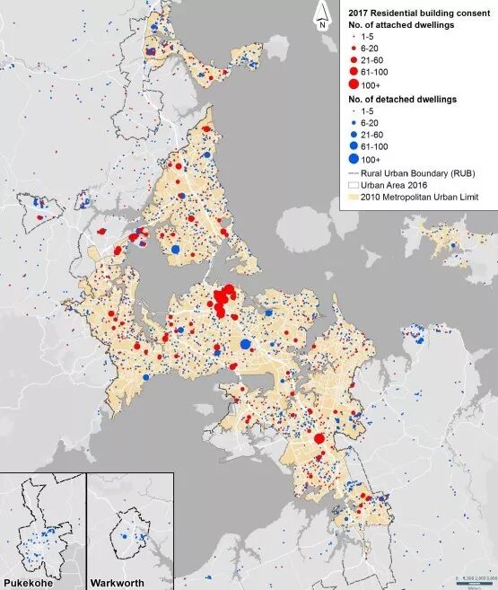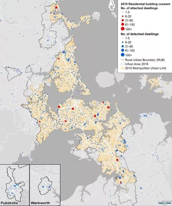 在2010年,奥克兰建筑许可情况可以看出,全奥克兰只有少数几个中高密度房产。