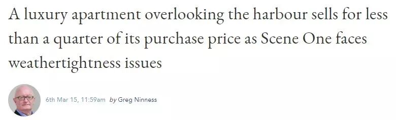 这幢名为Scene One的公寓楼建于2004年,曾经一度被认为是高质量的豪华公寓楼,但在2015年发现存在漏水问题后其价格一落千丈。