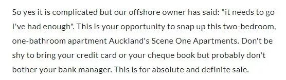 负责这套公寓销售的是City Sales房产中介公司,而在这套房产的介绍下也注明了:“Aussie vendor has had enough!(澳大利亚买家已经受够了)”