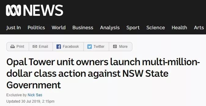 Opal Tower业主计划集体诉讼
