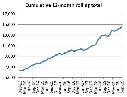 2019年10月新西兰全国房屋成交中位价首次突破60万纽币,达到了60.75万纽币,相比去年10月份的56.15万纽币增长了8.2%。