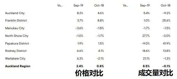 具体到奥克兰不同城区,奥克兰中区房价相比今年9月份上涨了8.2%;Rodney地区的房价相比上个月上涨了6.6%;奥克兰西区(Waitakere City)房价相比上个月上涨了6.3%。